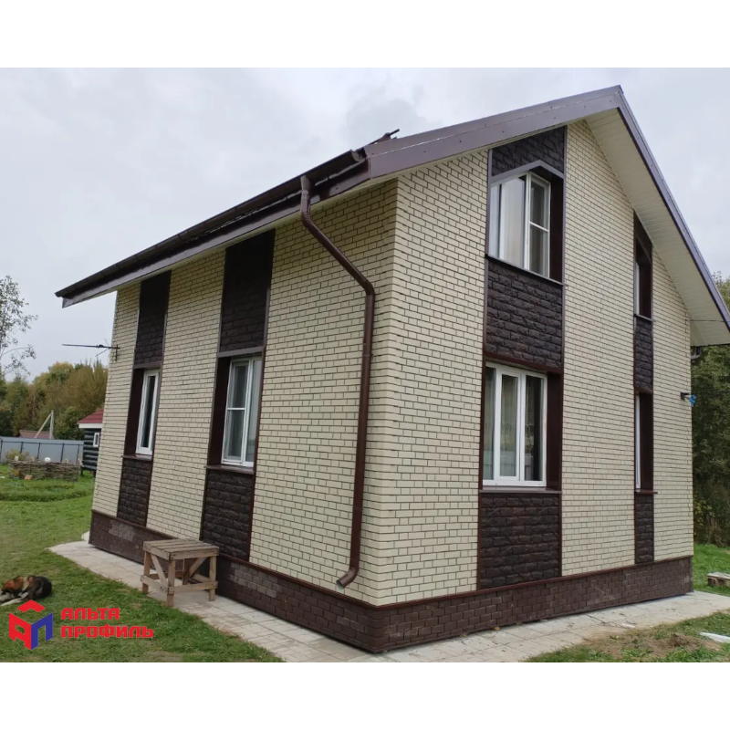 Фасадная панель под облицовочный кирпич с имитацией фламандской кладки из коллекции Клинкерный кирпич от Альта-Профиль. Гладкая фактура и однотонный цвет панели максимально реалистично передают красоту натурального кирпича и несомненно понравиться тем, кто предпочитает классический стиль отделки фасада.