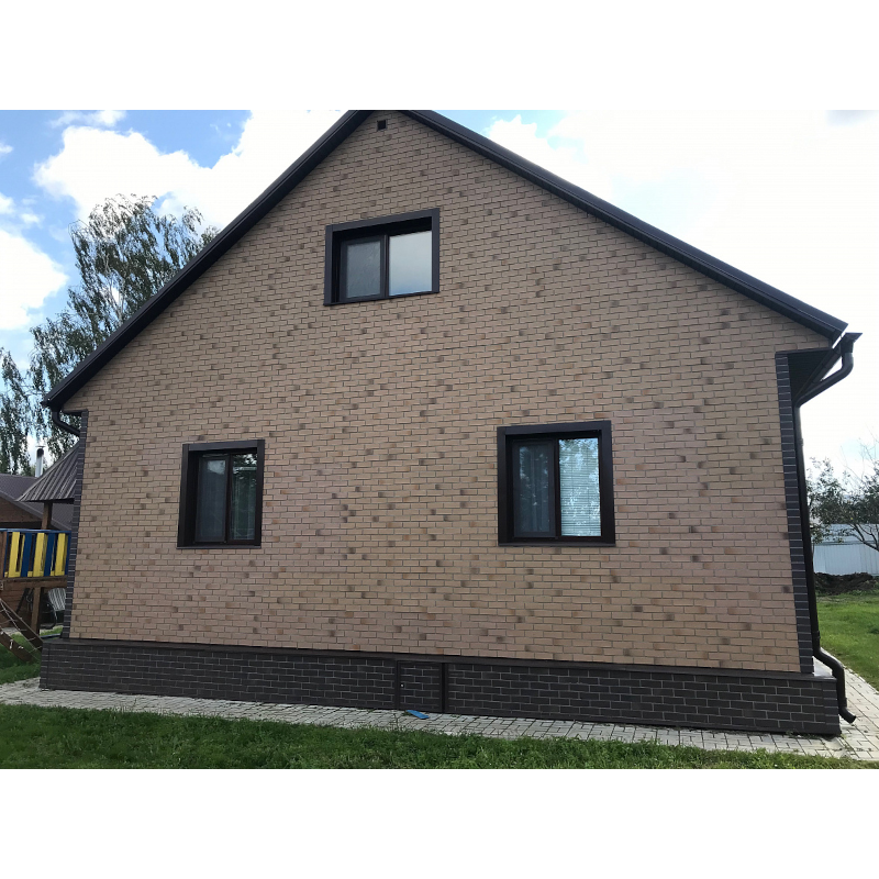 Фасадная панель под натуральный кирпич с имитацией ложковой кладки из коллекции BERG от Деке. Фактурная поверхность и белые контрастные швы придают панелям максимальное сходство с натуральным кирпичом. Панель изготовлена из полипропилена методом литья под давлением, имеет небольшой вес, поэтому не создает дополнительной нагрузки на несущие конструкции. За счет специальной трехступенчатой системы окраски, материал невосприимчив к УФ-лучам и атмосферным осадкам. Конструкция панели усилена ребрами жесткости, что обеспечивает повышенную устойчивость к механическим нагрузкам. Панели легко и надежно скрепляются между собой, монтируются на обрешетку. Монтаж можно производить в любое время года, за исключением сильных морозов (не ниже -15°С)