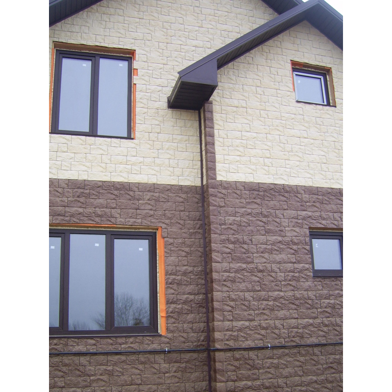 Фасадные панели могут использоваться как для оформления фасада целиком, так и для облицовки фундамента, выделения отдельных деталей.