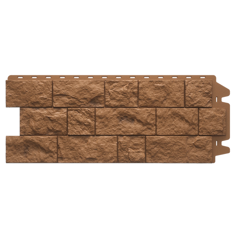 Фасадная панель в фактуре дикого скального тесаного камня из коллекции FELS от Деке. Крупный камень, взятый за основу панели, придаст дому объем. Панель изготовлена из полипропилена методом литья под давлением, имеет небольшой вес, поэтому не создает дополнительной нагрузки на несущие конструкции. За счет специальной трехступенчатой системы окраски, материал невосприимчив к УФ-лучам и атмосферным осадкам. Конструкция панели усилена ребрами жесткости, что обеспечивает повышенную устойчивость к механическим нагрузкам. Панели легко и надежно скрепляются между собой, монтируются на обрешетку. Монтаж можно производить в любое время года, за исключением сильных морозов (не ниже -15°С)