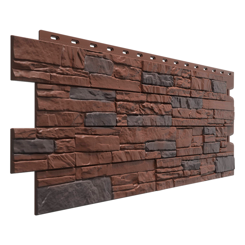 Фасадная панель с текстурой слоистого песчаника и имитацией натуральной каменной кладки из коллекции STEIN от Деке. Панель изготовлена из полипропилена методом литья под давлением, имеет небольшой вес, поэтому не создает дополнительной нагрузки на несущие конструкции. За счет специальной трехступенчатой системы окраски, материал невосприимчив к УФ-лучам и атмосферным осадкам. Конструкция панели усилена ребрами жесткости, что обеспечивает повышенную устойчивость к механическим нагрузкам. Панели легко и надежно скрепляются между собой, монтируются на обрешетку. Монтаж можно производить в любое время года, за исключением сильных морозов (не ниже -15°С)