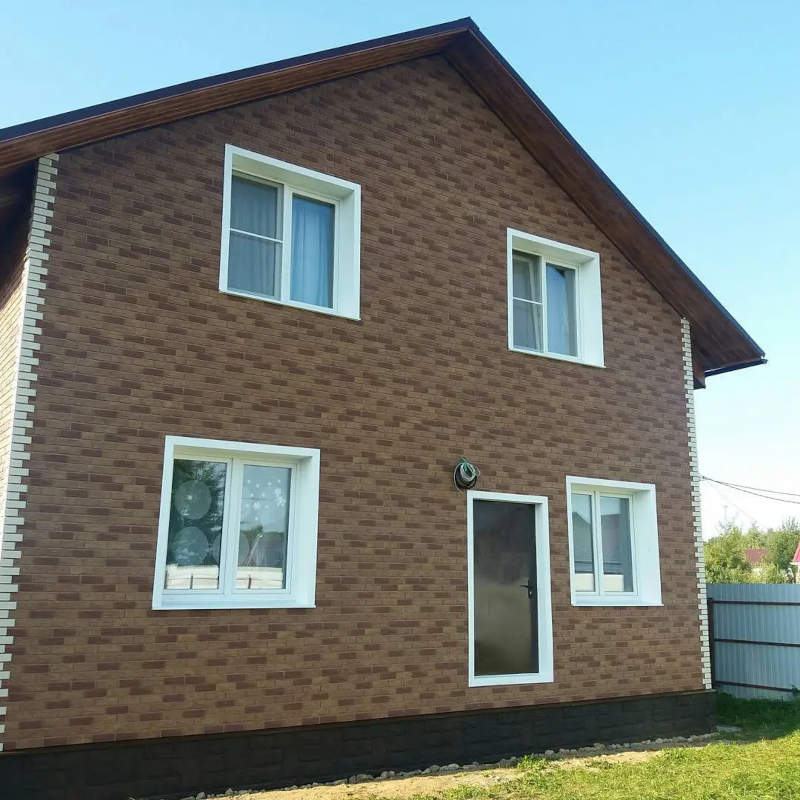 Фасадная панель под кирпич с ярко выраженной рельефной поверхностью из коллекции Кирпич от Альта-Профиль. Контрастные швы эффектно подчеркивают правильность линий и аккуратность ложковой кладки.