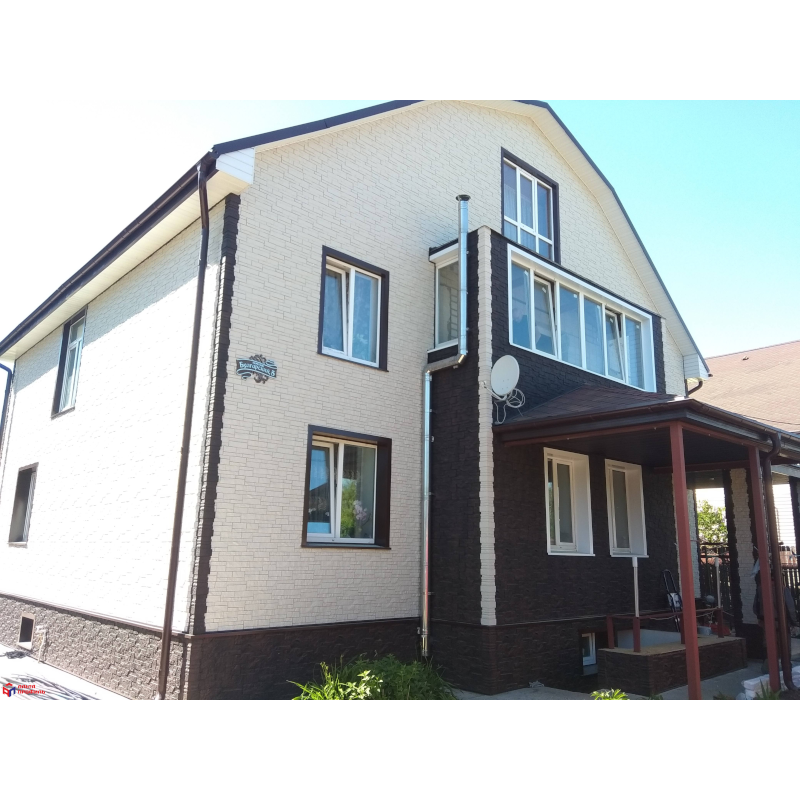 Фасадные панели могут использоваться как для оформления фасада целиком, так и для облицовки фундамента, выделения отдельных деталей.