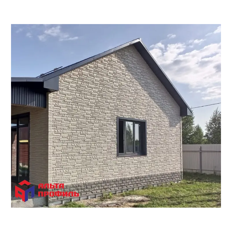 Фасадная панель под натуральный камень из коллекции Шотландия от Альта-Профиль. Выразительная фактура и оригинальная кладка из пластин разного размера максимально реалистично передает красоту природного камня. А особая форма панелей позволяет реализовать различные интересные архитектурные идеи.