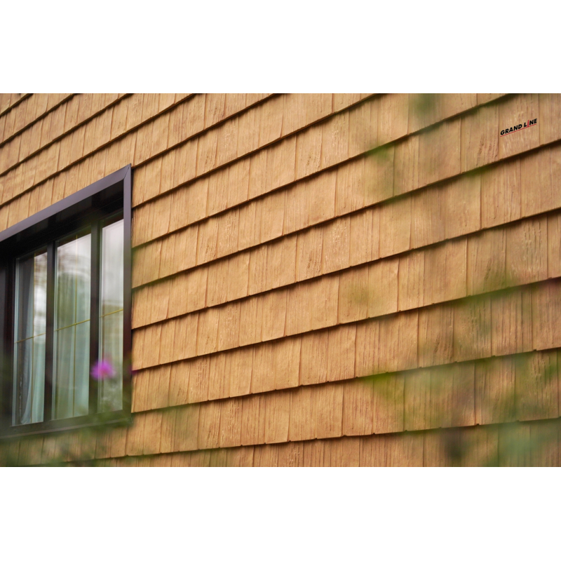 Фасадная панель Я-Фасад Сибирская дранка Янтарь — оптимальное сочетание надежности и эстетичного вида. Материал точно имитирует вид натурального дерева: дом будет выглядеть респектабельно, при этом отделка не вызовет сложностей и прослужит долго без особых усилий с вашей стороны.