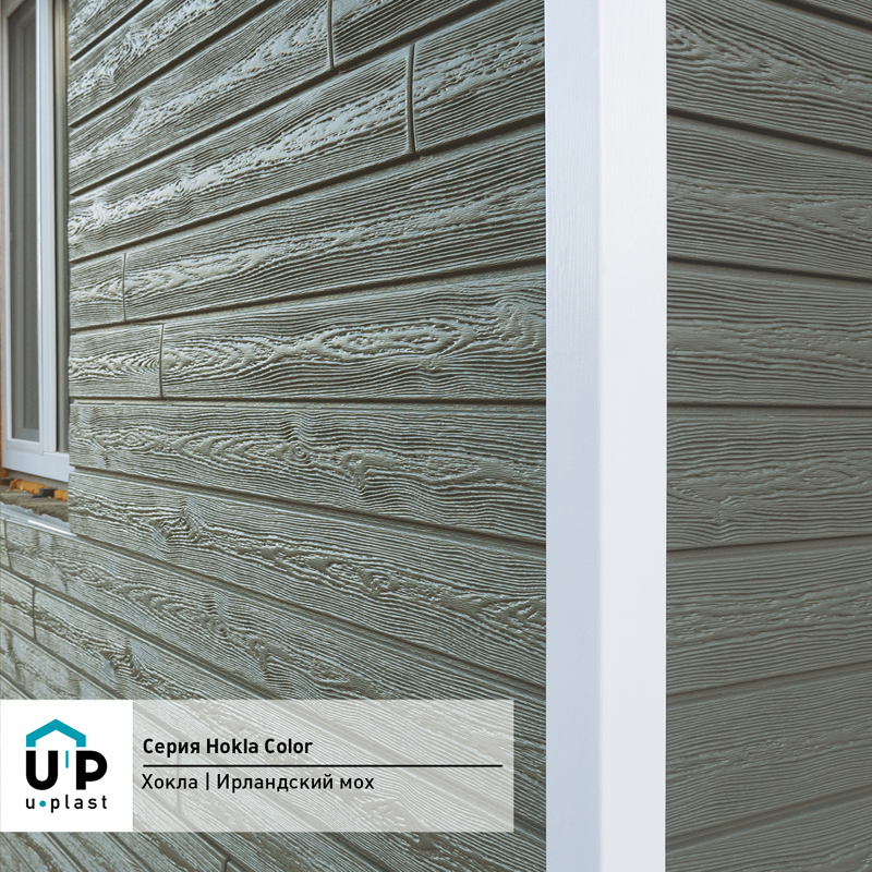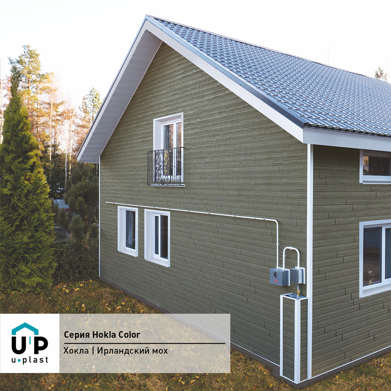 Фасадная панель Ю-Пласт Hokla Колор Ирландский мох — оптимальное сочетание надежности и эстетичного вида. Материал точно имитирует вид натурального дерева: дом будет выглядеть респектабельно, при этом отделка не вызовет сложностей и прослужит долго без особых усилий с вашей стороны.
