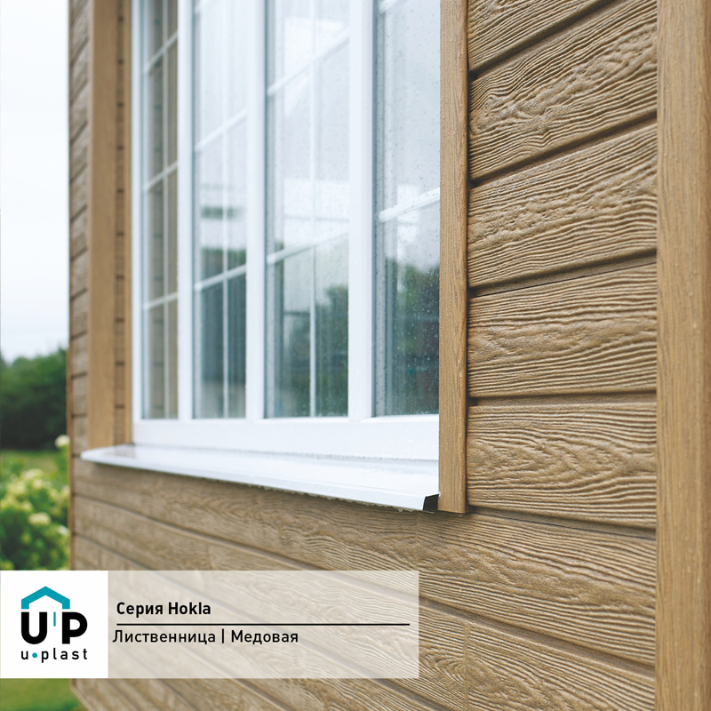 Фасадная панель Ю-Пласт Hokla Лиственница Медовый — оптимальное сочетание надежности и эстетичного вида. Материал точно имитирует вид натурального дерева: дом будет выглядеть респектабельно, при этом отделка не вызовет сложностей и прослужит долго без особых усилий с вашей стороны.