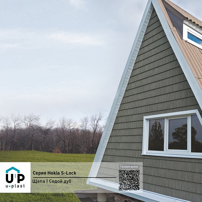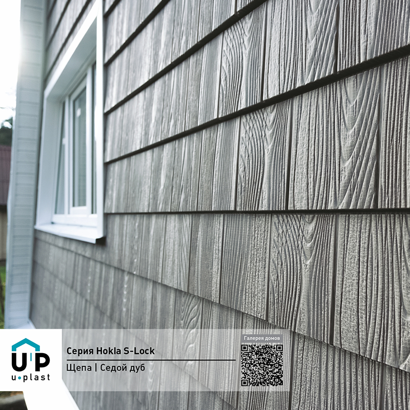 Фасадная панель Ю-Пласт Hokla S-Lock Щепа Дуб — оптимальное сочетание надежности и эстетичного вида. Материал точно имитирует вид натурального дерева: дом будет выглядеть респектабельно, при этом отделка не вызовет сложностей и прослужит долго без особых усилий с вашей стороны.