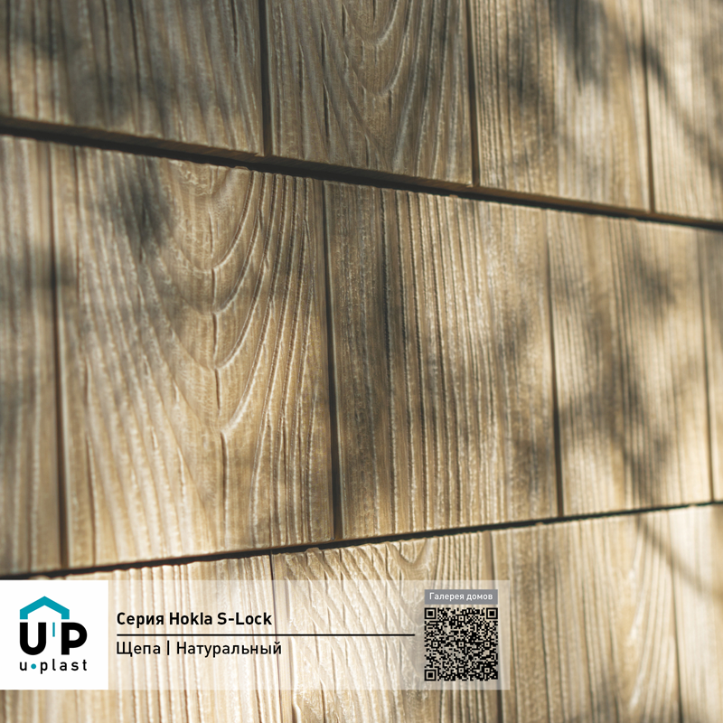 Фасадная панель Ю-Пласт Hokla S-Lock Щепа Орех натуральный — оптимальное сочетание надежности и эстетичного вида. Материал точно имитирует вид натурального дерева: дом будет выглядеть респектабельно, при этом отделка не вызовет сложностей и прослужит долго без особых усилий с вашей стороны.