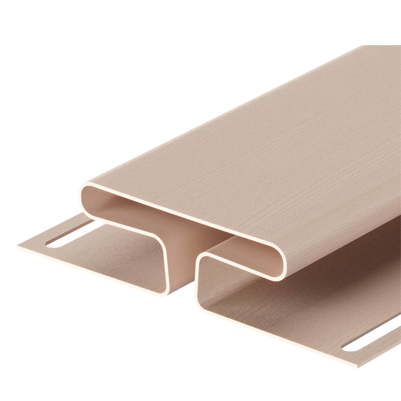 Универсальный виниловый H-профиль от Docke длиной 3 м, цвет Крем-брюле. Используется для соединения панелей сайдинга между собой при наращивании длины, маскировки стыков, при переходе от одного цвета сайдинга к другому.