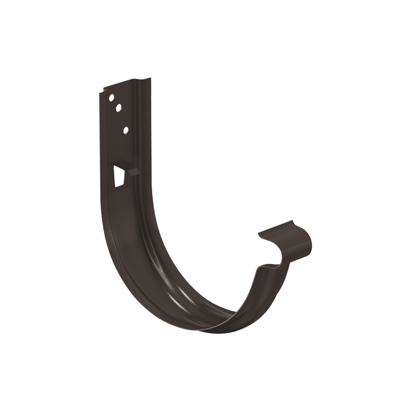 Кронштейн желоба универсальный D150 мм RR32 Темно-коричневый с покрытием Полиуретан (PUR) от производителя Аквасистем. Кронштейн используется для фиксации водосточного желоба и монтируется на лобовую доску. Также возможна его установка и без лобовой доски, для этого используется удлинитель крюка. Металлический водосток Аквасистем размерностью 150/100 обладает большой пропускной способностью и подходит для кровель большой площади. Водосточная система Аквасистем изготовлена из премиальной марки оцинкованной стали. Имеет многоуровневую двухстороннюю защиту стали от ржавчины и коррозии: цинк (275 гр\м2), пассивирующий слой, грунт, глянцевое покрытие Полиуретан (PUR) толщиной 50 мкм. Полимерное полиуретановое покрытие обладает высокой стойкостью к ультрафиолетовому излучению, механическим повреждениям и коррозии, не выгорает, максимально устойчиво к царапинам. Водосток устойчив к большим температурным перепадам ( -60 до +120°C). Строгий дизайн и палитра самых популярных оттенков водостоков Аквасистем идеально сочетаются с любым фасадом и кровлей. ТЕХНИЧЕСКИЕ ПРЕИМУЩЕСТВА ВОДОСТОКОВ АКВАСИСТЕМ: – Конструкция кронштейна желоба исключает смещение желоба под нагрузкой, существенно увеличивает прочность водосточной системы. – Трубы имеют внешний раструб – максимальная пропускная способность. Оснащены внутренним замком – максимальная прочность на разрыв. – Хомут трубы с дополнительными ребрами жесткости – надежная фиксация водосточной трубы. – Угол желоба без сварного шва – увеличивает долговечность изделия. – Соединитель желоба с универсальным замком и дополнительным элементом жесткости. – Колена имеют боковой стыковочный шов (выше линии потока воды) – увеличивает долговечность изделия. – Идеальная стыковка элементов – высокоточная геометрия. Увеличенная гарантия на отсутствие сквозной коррозии – 30 лет, на стойкость покрытия – 15 лет! Купить кронштейн желоба универсальный D150 мм RR32 Темно-коричневый с покрытием Полиуретан (PUR) от Аквасистем недорого вы можете в нашем интернет-магазине Удачная покупка. Наши менеджеры помогут с выбором и рассчитают необходимое количество элементов водостока.