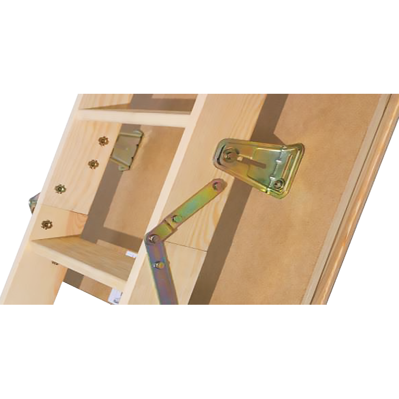 Комплектация и параметры лестниц LWS полностью соответствуют характеристикам лестниц Fakro LWS Plus c одним отличием. Лестничный марш в модели LWS крепится к крышке люка, а не к коробу. Такая конструкция гарантирует дополнительную устойчивость. Петли-шарниры позволяют регулировать положение марша относительно крышки люка при подрезке нижнего сегмента (не более 40 мм!). Поручень приобретается отдельно!