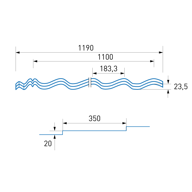 Покрытие — Satin® цвета RAL7004. Формат поставки: в м², длины под расчет. Длина — 500 ÷ 8000 мм. Профиль — Classic высотой 23,5 мм.