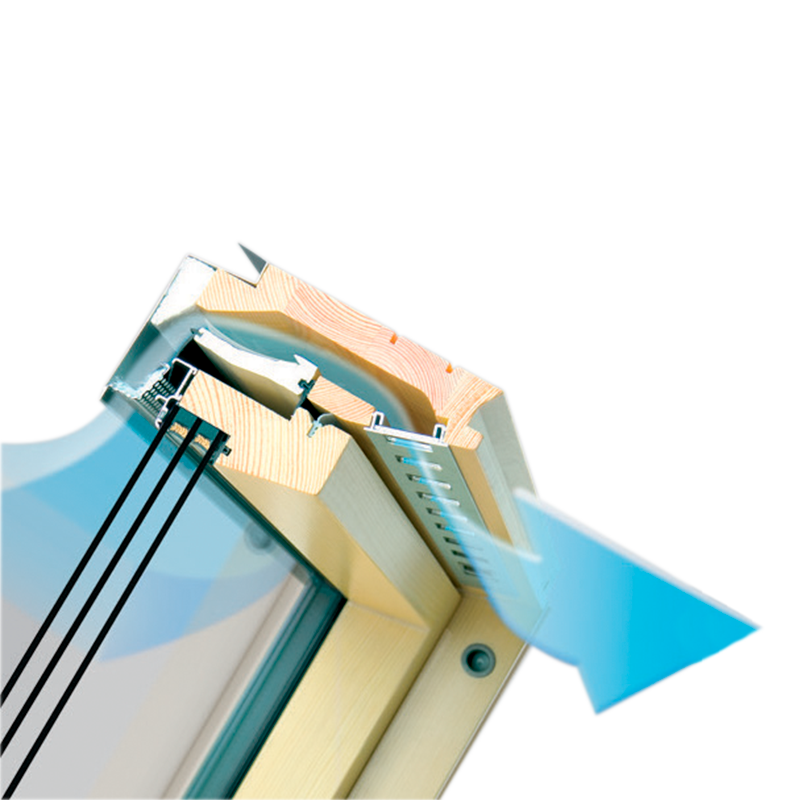 Мансардное окно FAKRO FTS-V U4 со среднеповоротным открыванием, оснащено фрикционными петлями, располагающимися в его центральной части. Такая конструкция позволяет оставлять створку окна в позиции наклона, а также поворачивать её вокруг своей оси на 180°, что значительно облегчает мытье внешнего стекла. Среднеповоротное окно FTS-V произведено из высококачественной древесины сосны, пропитано антисептиком и покрыто двумя слоями полиакрилового лака на водной основе. В верхней части оконной рамы установлен вентклапан V10, который позволяет оптимизировать приток свежего воздуха в помещение. Поток воздуха регулируется вручную. За счет лабиринтообразного строения клапана перемешивание холодного воздуха, поступающего с улицы, с теплым воздухом происходит внутри вентклапана, что предотвращает образование конденсата на внутренней стороне стеклопакета. В конструкции мансардного окна FTS-V предусмотрено 3 контура уплотнения, что обеспечивает защиту от продувания и хорошую звукоизоляцию, комфорт при закрывании оконной створки. Удобная ручка, расположенная в нижней части оконной створки, позволяет легко открывать-закрывать мансардное окно и фиксировать его в двух положениях проветривания. Окно FAKRO FTS-V U4 имеет двухкамерный энергосберегающий стеклопакет. Структура остекления U4 / 4HT-12-4-12-4T: - внешнее закаленное стекло с низкоэмиссионным покрытием - стальная дистанционная рамка - стекло - стальная дистанционная рамка - внутреннее стекло с низкоэмиссионным покрытием - пространство между стеклами заполнено инертным газом аргоном Для установки окна в кровлю необходимо приобретать изоляционный оклад, выбор которого зависит от типа Вашей кровли. Для быстрой и профессиональной установки мансардного окна рекомендуется приобретать монтажный комплект гидро- пароизоляционных окладов XDK. Также есть возможность установки широкого ассортимента аксессуаров для мансардных окон.