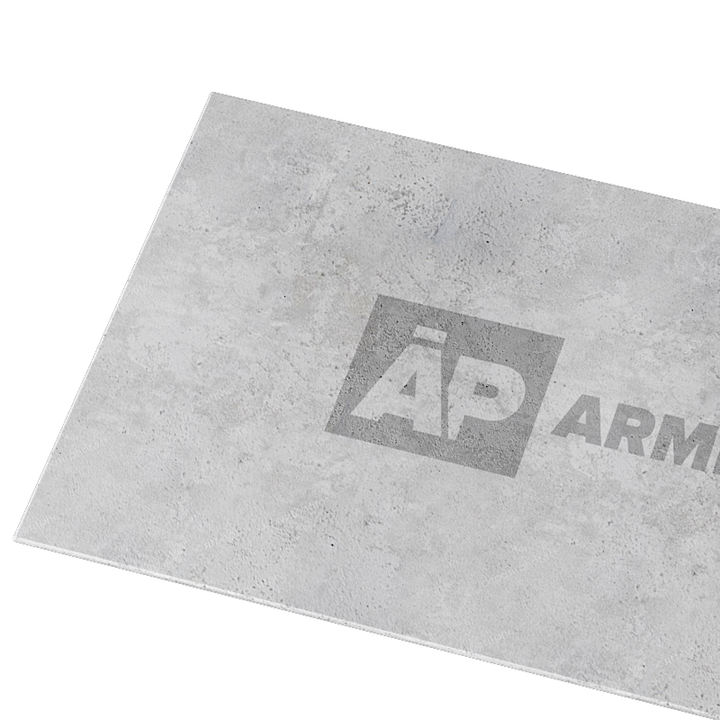 Влагостойкая армированная цементно-перлитовая плита для внутренних и наружных работ ArmPanel толщиной 9 мм. Изготавливается из минерального вяжущего (цемента), вспученного перлитового песка, модифицирующих добавок, ускорителя твердения и армирующей, щелочестойкой стекловолоконной сетки. Состав и технология производства обеспечивают высокую прочность панели. Материал не горюч, устойчив к влаге, грибку и значительным перепадам температур. Вспученный перлит наделяет панель высокими показателями тепло-, звукоизоляции и пожаробезопасности, при этом значительно уменьшая массу панели. Плита АЦПЛ ArmPanel универсальна и обладает рядом преимуществ, что расширяет сферу ее применения.