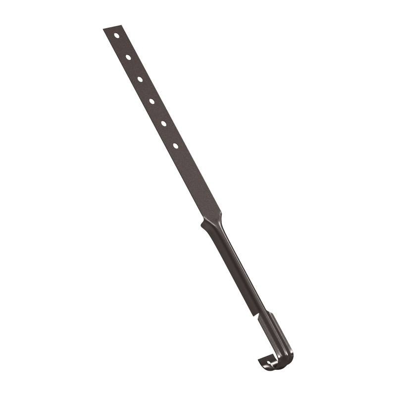 Поддержка водосточного желоба D125 мм RR32 Темно-коричневая с покрытием Полиуретан (PUR) от производителя Аквасистем. Обеспечивает дополнительную поддержку желоба в сложных местах кровельных систем, в ендовах, или при крутых уклонах кровли, где возможен лавинообразный сход снега. Может устанавливаться на всех видах кровли.