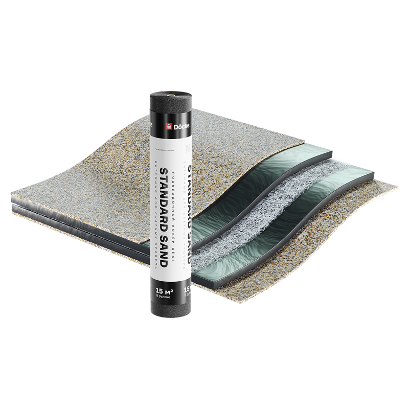 Подкладочный ковер Docke PIE STANDARD SAND 1000 мм x 15 м. — продукция надежного производителя, необходимая для качественного монтажа кровельного покрытия.