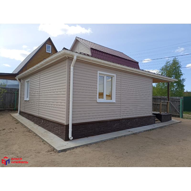 Виниловая панель однопереломного сайдинга длиной 3,1 м (3100 мм) из коллекции Блокхаус Престиж от Альта-Профиль. Сайдинг объемной формы, имитирующий оцилиндрованное бревно, дополнен тиснением под натуральное дерево, Панель из винила под бревно отличное решение для любителей традиционного стиля, она ничуть не уступает в красоте натуральной древесине, в то же время, данный материал намного дешевле и не требует дополнительного ухода. Блок-хаус ВН-01 за счет своей формы и ширины выглядит более массивным, фасад с ним смотрится дорого и солидно. Виниловый блок-хаус морозоустойчив и сохраняет ударопрочность при температуре до -60°С, поэтому он идеально подходит для северных регионов страны. Купить сайдинг Блокхаус Престиж ВН-01 Персиковый от Альта-Профиль по приятной цене вы можете в нашем интернет-магазине Удачная покупка.