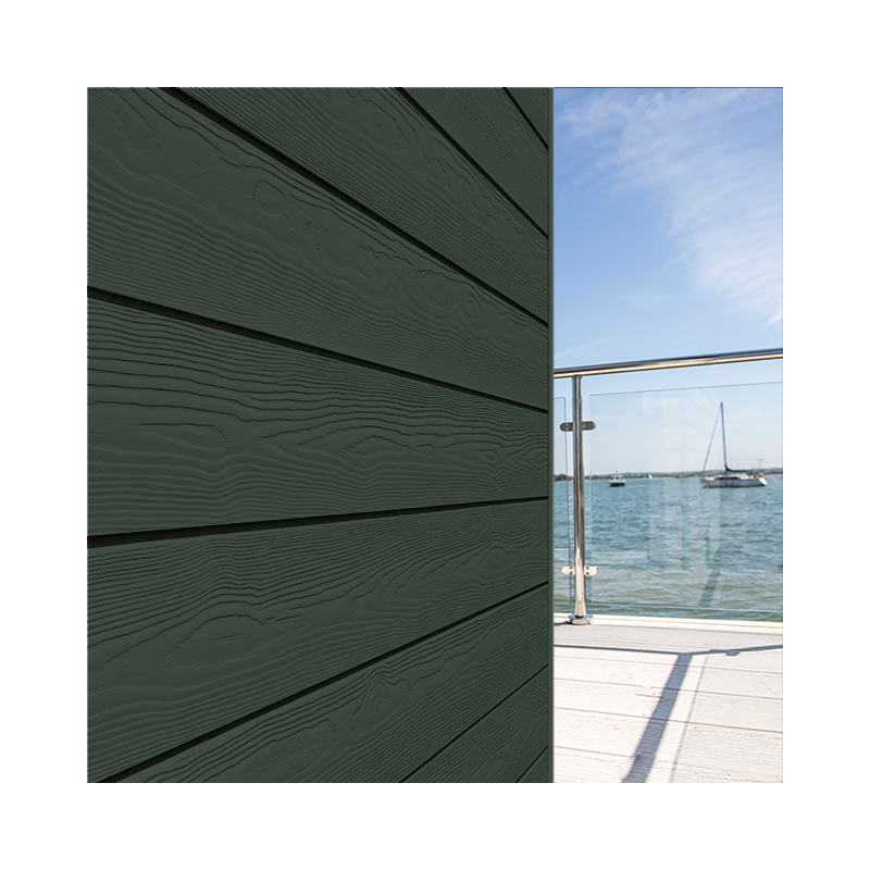 Фиброцементный сайдинг с фактурой под дерево Cedral Click Wood длиной 3,6 м, цвет C31 Зеленый океан. Фиброцементный сайдинг Cedral (Кедрал) — прочный, водостойкий и морозостойкий фасадный материал. Производится из армирующих волокон целлюлозы, цемента и кварцевого песка. Изготавливается в форме досок, окрашивается в 6 слоев по запатентованной заводской технологии. Фиброцементная доска Cedral имеет высоко устойчивое к выцветанию покрытие с большим разнообразием оттенков. Фибросайдинг имеет высокую прочность, устойчив к механическим повреждениям, обладает хорошими тепло и шумоизоляционными свойствами, высокой степенью устойчивости к атмосферному воздействию и серьезным перепадам температур, устойчив к агрессивным веществам, плесени и грибку. Негорючий, экологически чистый материал. Доска из фиброцемента не расширяется и не сжимается под воздействием колебаний температуры и сохраняет стабильность формы. Легко режется, монтируется без предварительного сверления. Фиброцементный фасад прост в уходе, легко моется. Фиброцементный сайдинг одно из наиболее долговечных решений для облицовки фасада. Срок службы фасадного материала более 50 лет. Сайдинг Cedral выпускается в 2-х сериях: Lap и Click, и с двумя типами поверхности: фактурной под дерево (Wood) и гладкой (Smooth). Фиброцементная доска серии Lap монтируется внахлест “елочкой”, на кромке доски серии Click предусмотрен паз для соединения досок встык. Обе серии могут использоваться как вертикального, так и горизонтального монтажа. Фасадная доска Cedral может использоваться для отделки цоколя, обрамления углов, оконных и дверных проемов. Также доступен широкий выбор аксессуаров для бесшовной отделки. Купить фиброцементный сайдинг под дерево Cedral Click Wood C31 Зеленый океан по выгодной цене вы можете в нашем интернет-магазине Удачная покупка. Наши менеджеры рассчитают необходимое количество материала и помогут с выбором аксессуаров и комплектующих.