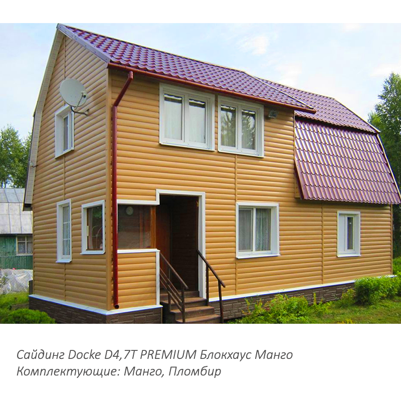 Сайдинг Docke PREMIUM D4,7T Манго 3600 мм — выбор тех, кто хочет создать эстетичное и практичное оформление фасада.