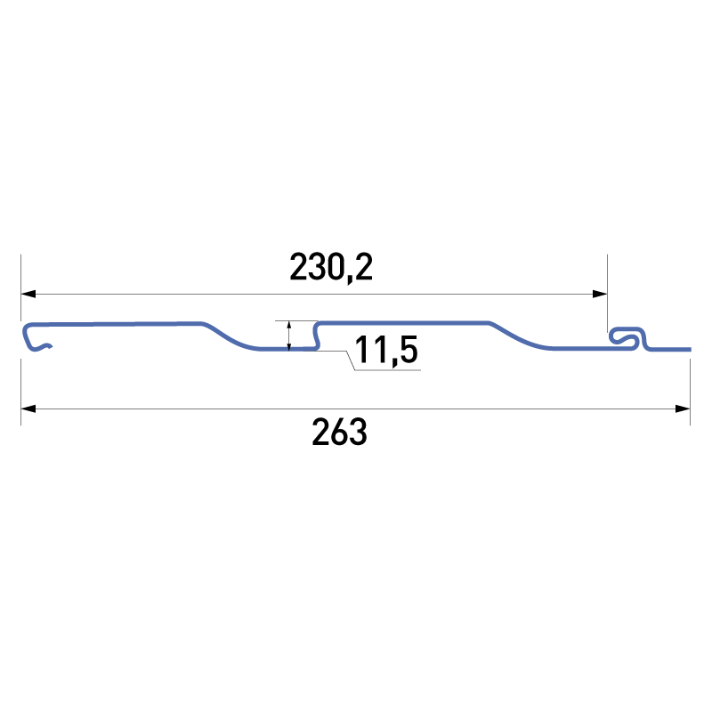 Длина изделия составляет 3000 мм. Высота — 230 мм. Вид профиля — Корабельный брус: прост в монтаже, не нагружает конструкцию здания.