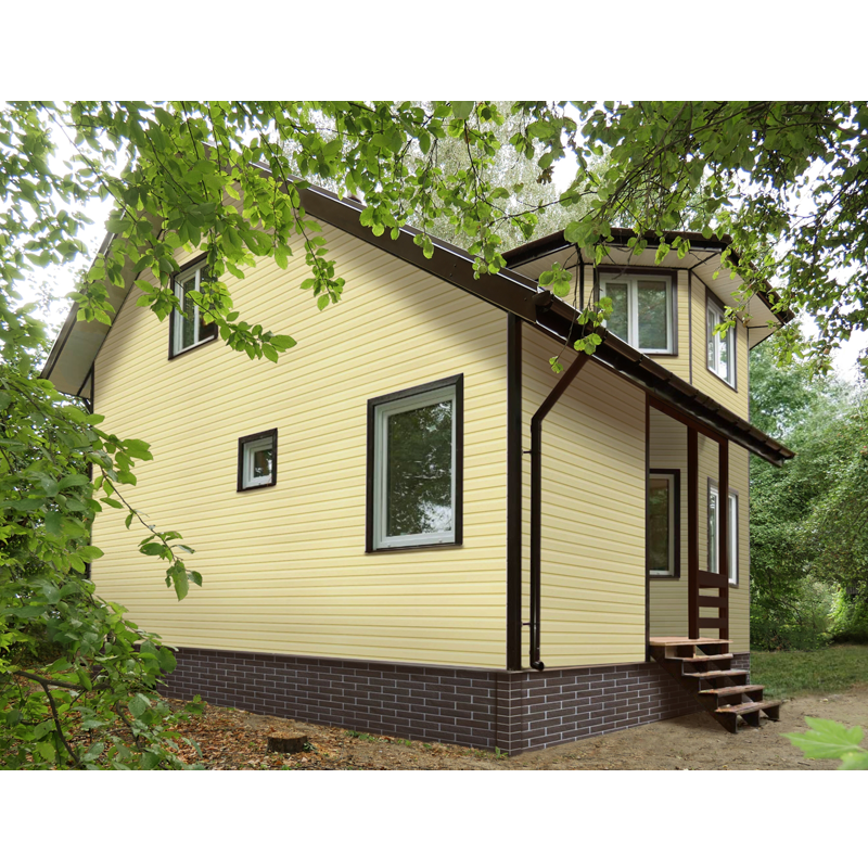 Сайдинг серии XL от Гранд Лайн c увеличенной высотой панели. Полная высота — 259 мм, полезная — 224 мм. Классический двухпереломный сайдинг Ванильный с ненавязчивым тиснением поверхности под рисунок натурального дерева. Длина панели 3,6 м. в сочетании с шириной сайдинга позволяет сэкономить на аксессуарах для монтажа за счет меньшего количества стыков и ускорить выполнение работ.