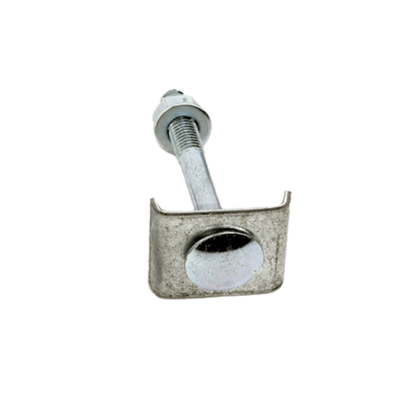 Универсальная оцинкованная скоба с отверстием, один из вариантов крепления сварной сетки к столбу или к другой опоре. Комплектуется болтом и гайкой M6. Загнутые края позволяют надежно зафиксировать сетку к каркасу ограждения. Применяется при монтаже со сверлением опорной конструкции.