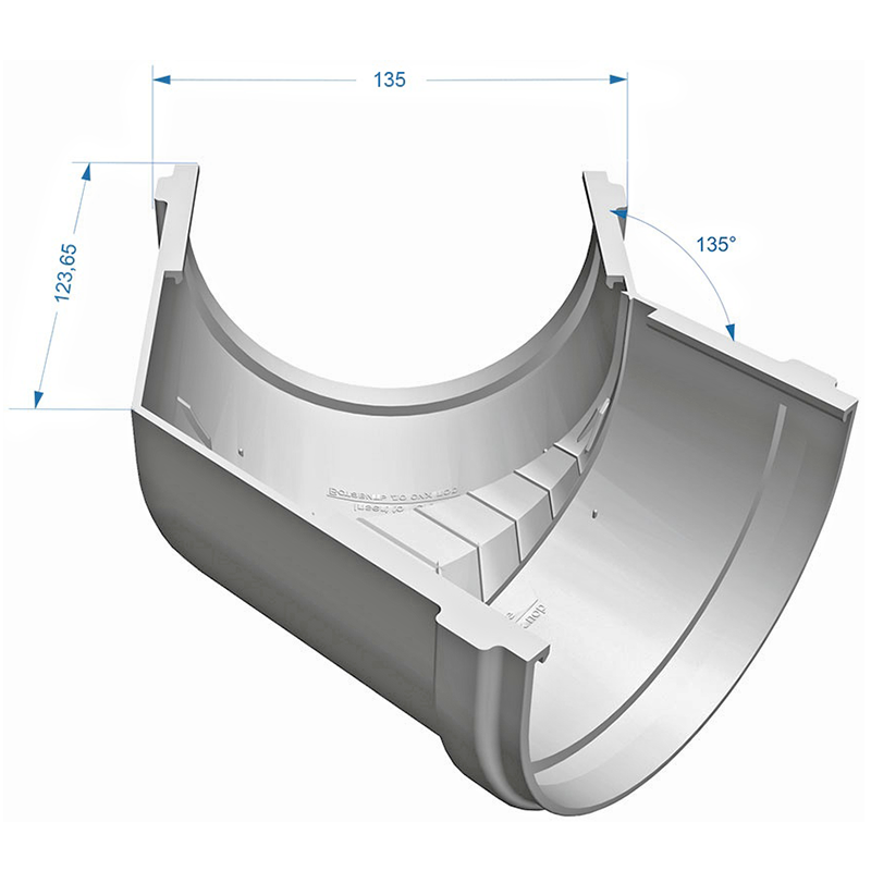 Угол желоба универсальный 135° D120 мм цвета Шоколад серии PREMIUM от производителя Docke. Предназначен для соединения водосточных желобов под углом 135 градусов, для смены направления движения воды в стоке. Обеспечивает непрерывность линии водостока. Устанавливается на внутренних и наружных углах здания.