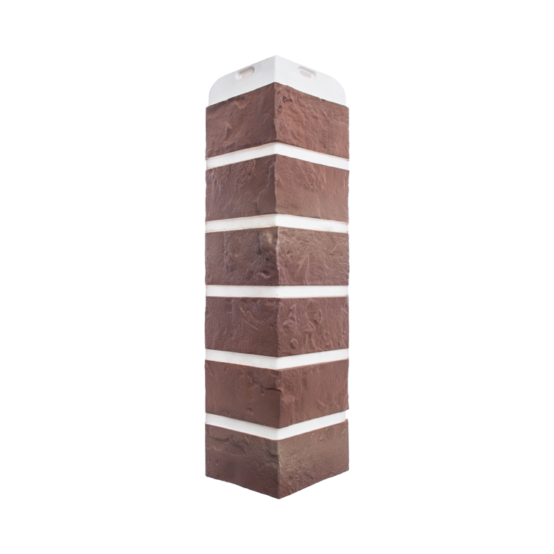 Внешний угол для фасадной панели под фактурный кирпич с контрастными швами из коллекции Рижский кирпич от Альта-Профиль длиной 439 мм. Предназначен для декоративного оформления и защиты наружных углов фасада. Скрывает и укрепляет места угловых стыков фасадных панелей. Углы для фасадных панелей по структуре и цвету соответствуют панелям коллекции Рижский кирпич и производятся из идентичного материала (полипропилен). Материал устойчив к грибку, плесени и коррозии. Многослойное окрашивание надежно защищает от УФ-лучей, обеспечивая сохранность цвета долгие годы.