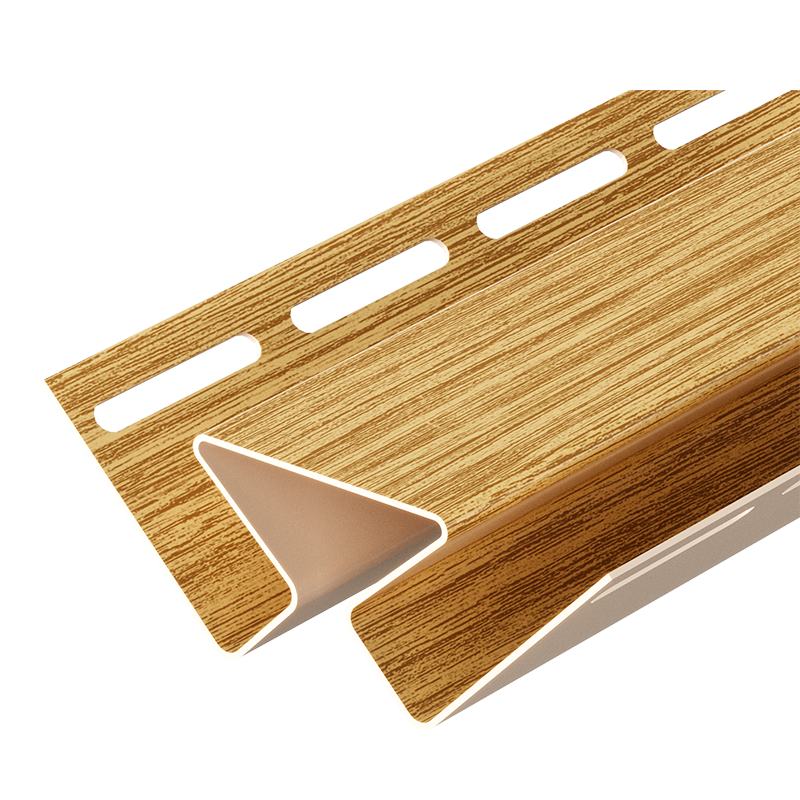 Виниловый внутренний угол под дерево Docke серии LUX длиной 3 м, цвет Зрелый каштан. Используется для декоративного оформления и защиты внутренних углов фасада. Скрывает и укрепляет места угловых стыков сайдинга.