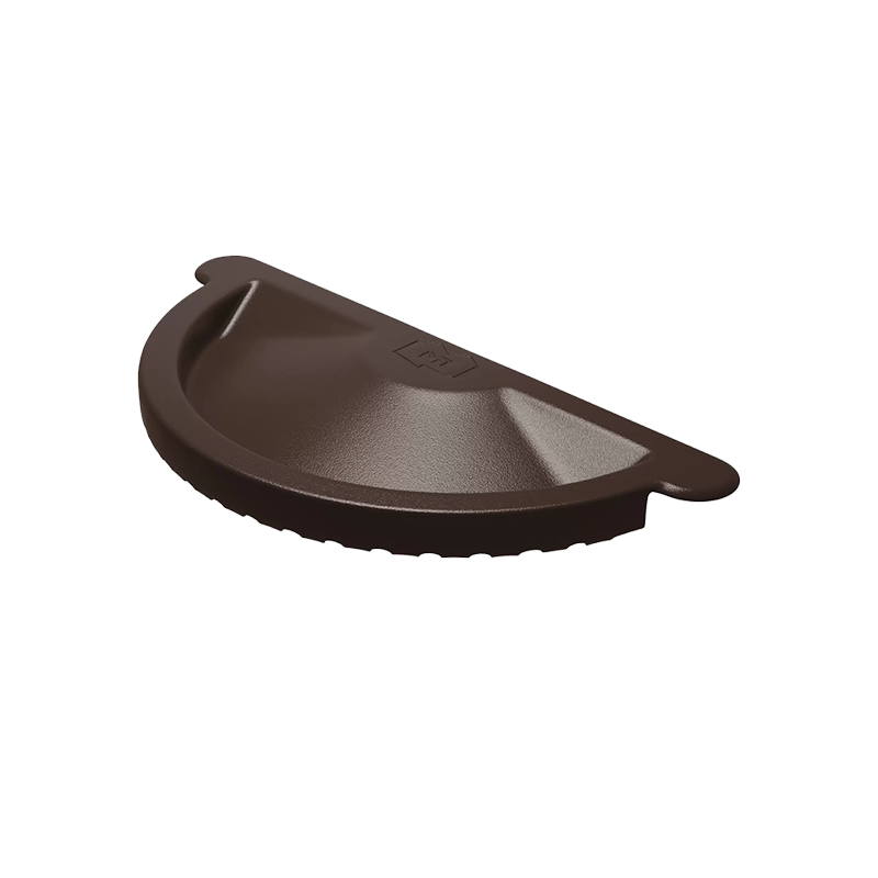 Заглушка желоба D125 мм коричневая RAL8017 с покрытием Пластизол серии МП Престиж от Металл Профиль. Предназначена для закрытия торцов водосточных желобов.